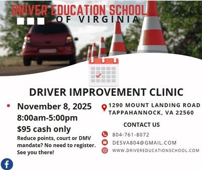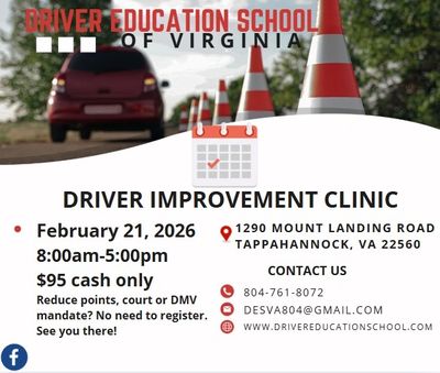 If you have gotten a letter from DMV, have been sent to Driving School by a court, or would like to improve the points on your driving record, this is the class for you. You can take this class for points once every two years.